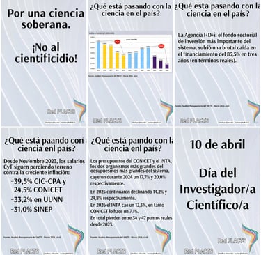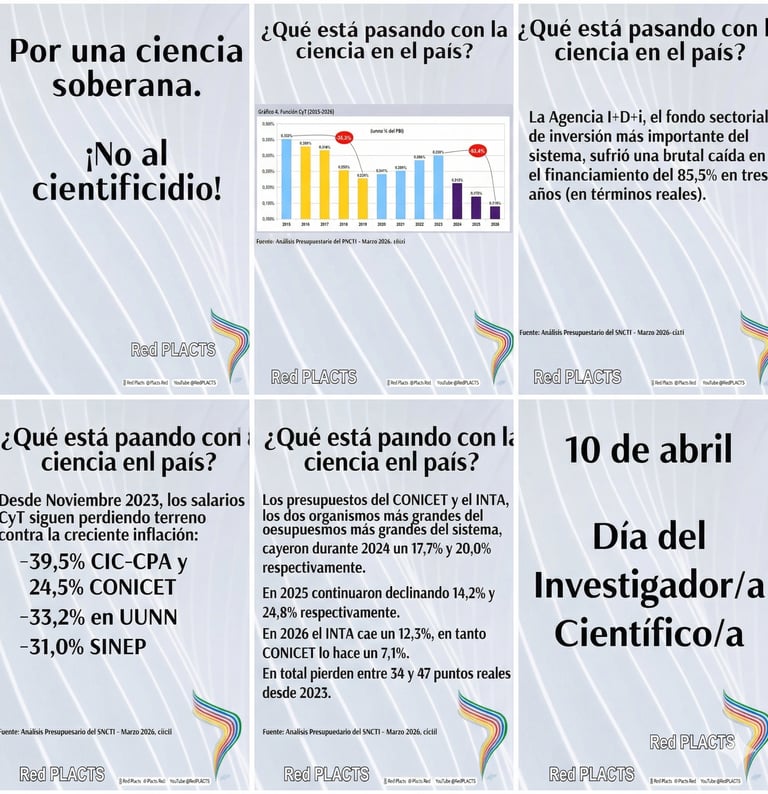 10 de abril: Día del Investigador/a Científico/a en tiempos de Cientificidio Hoy se celebra el Día del Investigador y la Investigadora Científica en Argentina. Una fecha que debería ser de reconocimiento a la labor quienes generan conocimiento para el desarrollo nacional. Pero en 2026, esta conmemoración encuentra a la comunidad científica en estado de emergencia. Mientras se nos invita a celebrar, la realidad es otra: estamos siendo testigos del cientificidio, la destrucción sistemática de décadas de capacidades científicas construidas con esfuerzo colectivo.